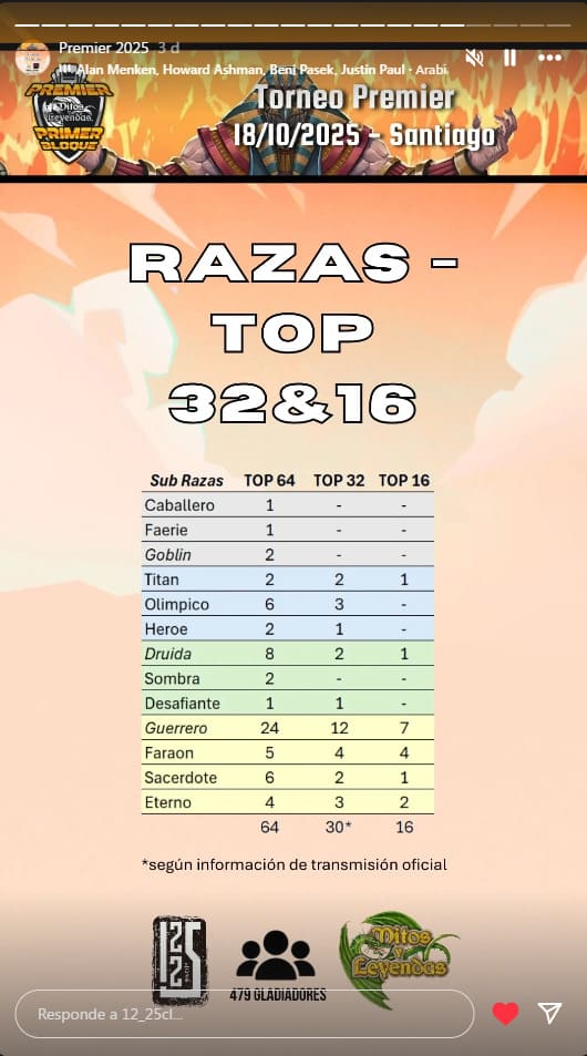 La gran decepción de este Premier es la raza Desafiante💩, que con la segunda mayor cuota de jugadores (70) sólo consiguió poner a 1 jugador en el top. Este es un resultado muy malo, porque se esperaba que al menos pasaran 9 jugadores al top, sin considerar que fue la raza más fuerte durante la última etapa del aniversario de Hijos de Daana.